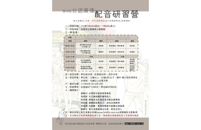 開始報名(已截止)-第4屆台語廣播配音研習營